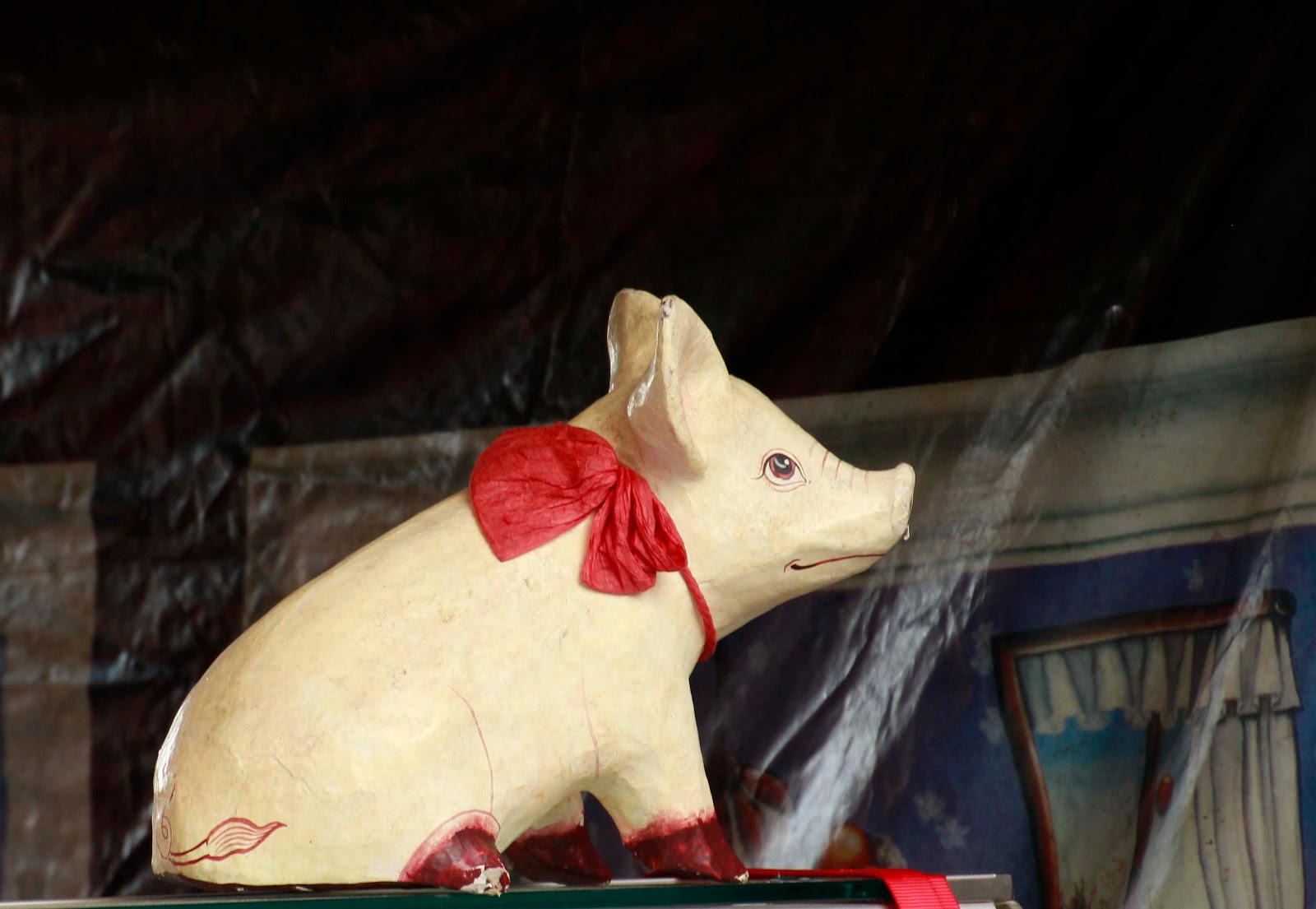 Miss Piggy all dressed up with red bow of to market to market ''that is Queen street market'' .............. |