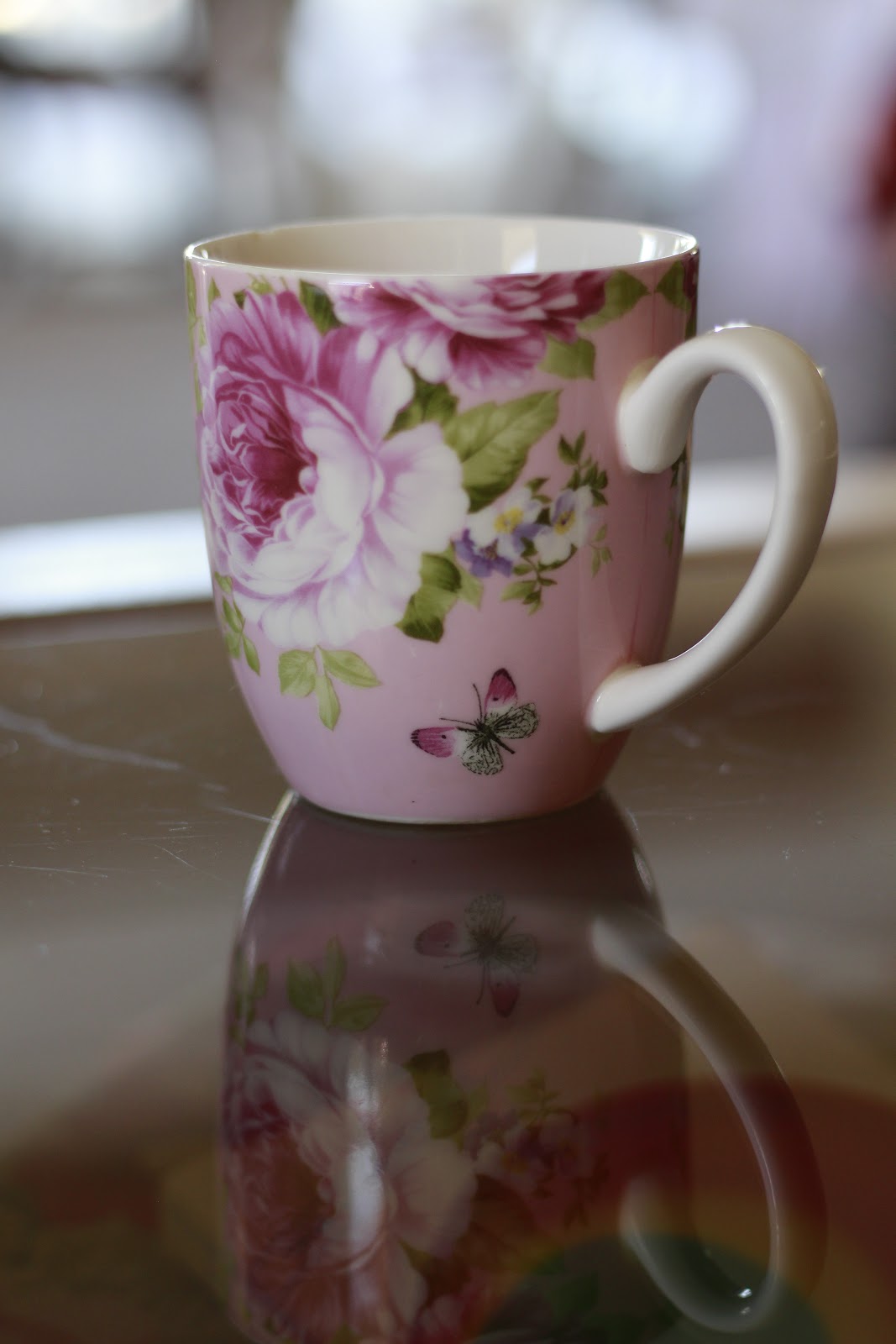 While watching this tribute' I had next to me my cup of licorice tea in my favorite chipped flowered mug, funny I hadn't noticed the little butterfly until that evening.......... |